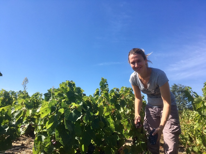 醸造責任者であるオーレリー氏も畑で収穫を始める区画や選定の指導を行っています。